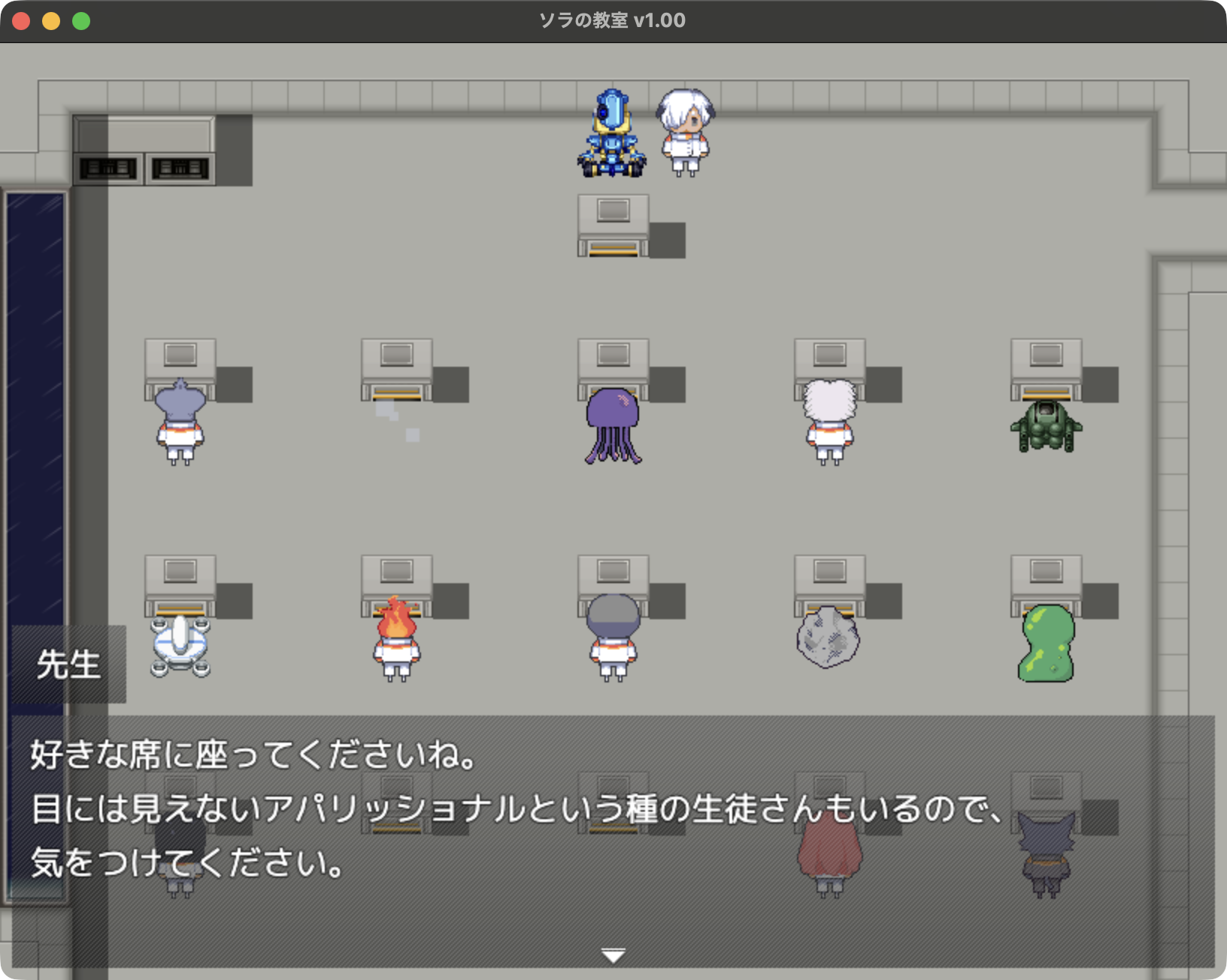 転校先は、さまざまな種の宇宙人が学ぶ学校。みんなに話しかけていきます。